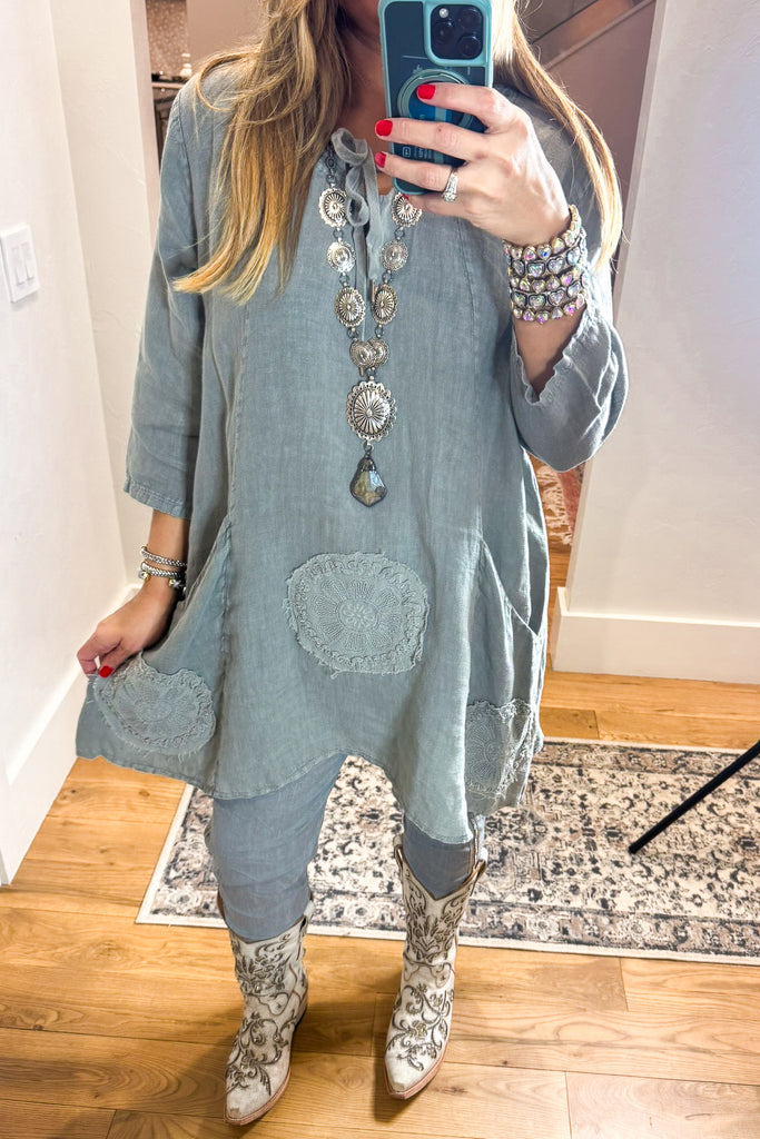 • Whispered Charm Tunic/Dress - 100% Linen - Gray - MADE IN ITALY