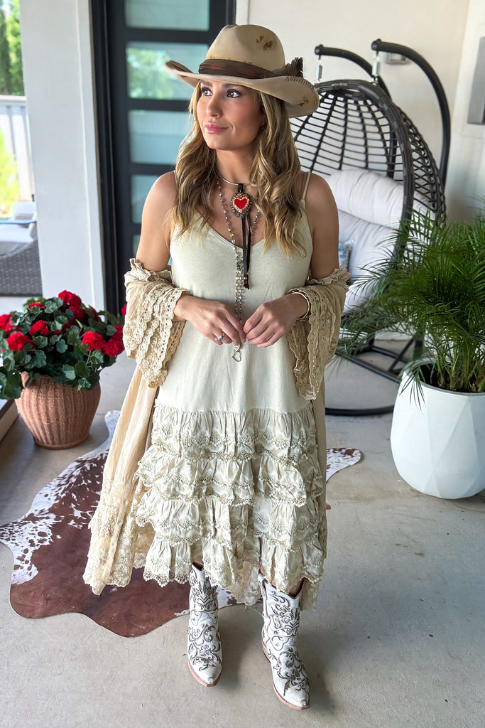 PRE ORDER:Desert Lace Daydream Slip Dress - Cotton Linen Blend - MADE IN USA
