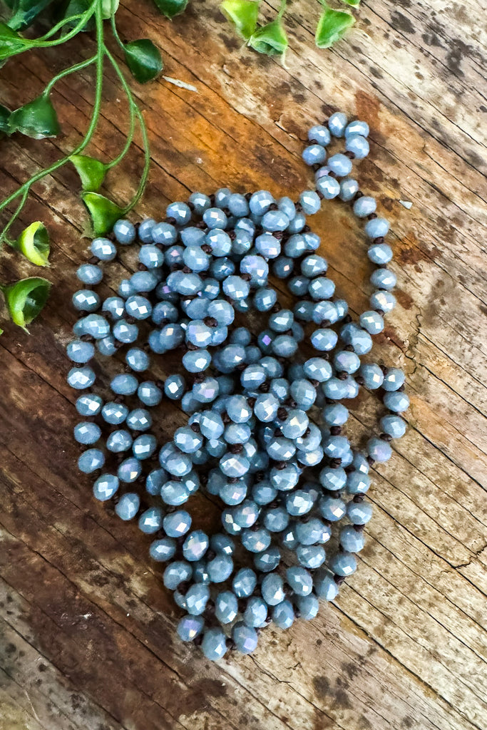 Knotted Beaded Necklace - Slate Blue