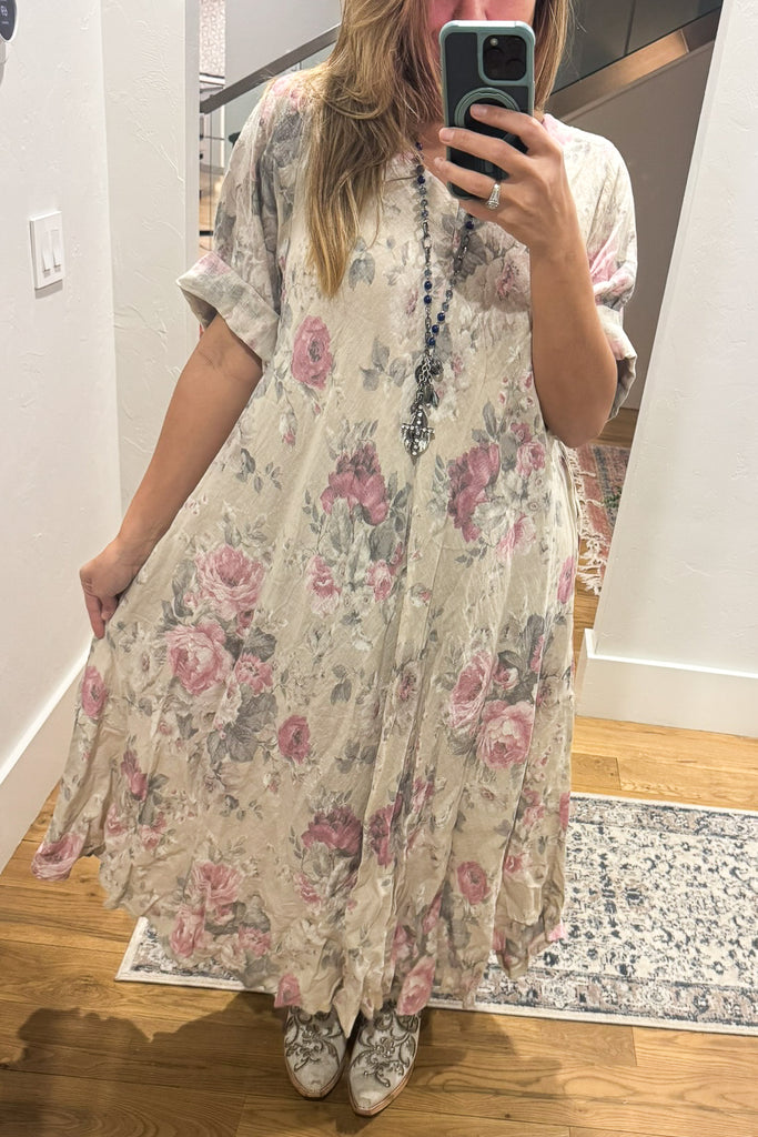 Pre order: Bella Vita Floral Italian Linen Dress - 100% Linen - Made in Italy