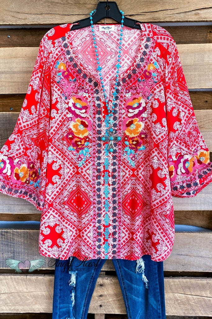AHB EXCLUSIVE: Bandana Love Blouse - Red - SALE