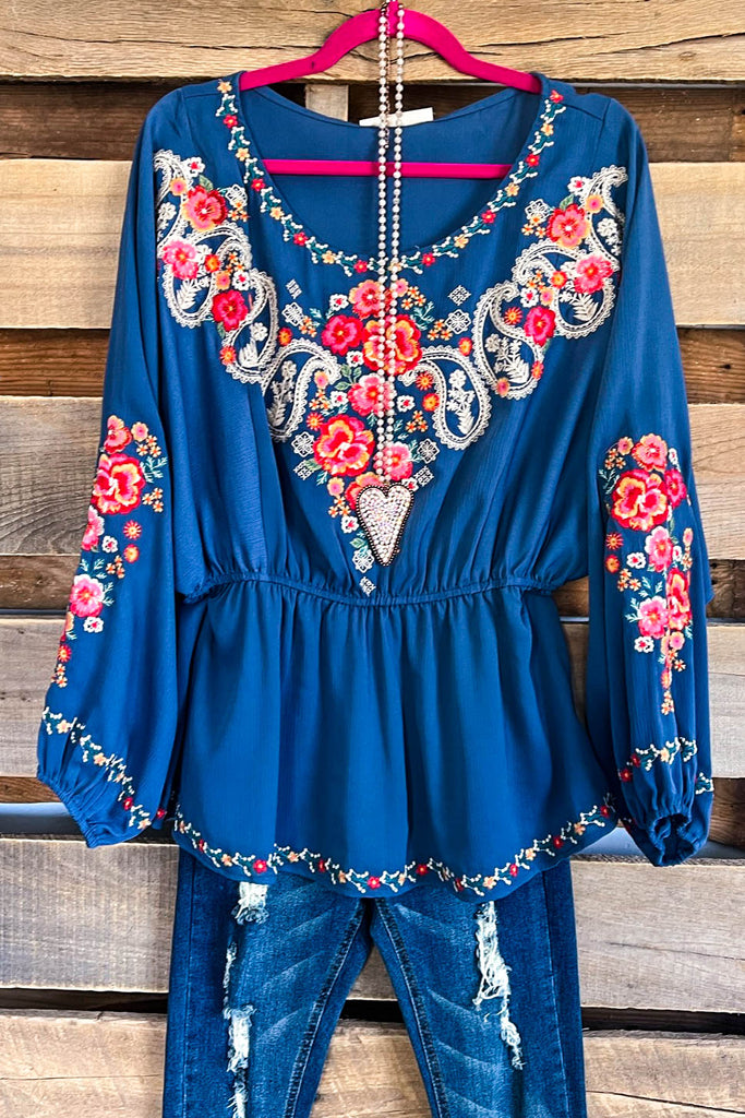 AHB EXCLUSIVE: Dashing With Zeal Blouse - Midnight Blue - SALE