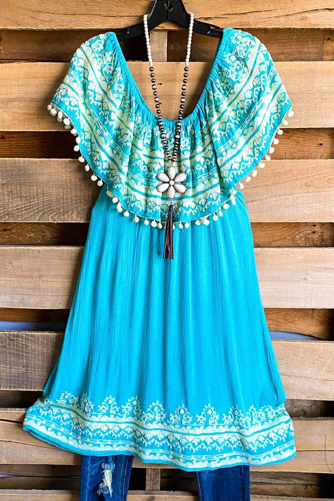 AHB EXCLUSIVE: Havana Nights Dress - Turquoise/Cream - SALE