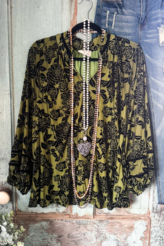 Meaningful Beauty Blouse Burnout Velvet - Olive