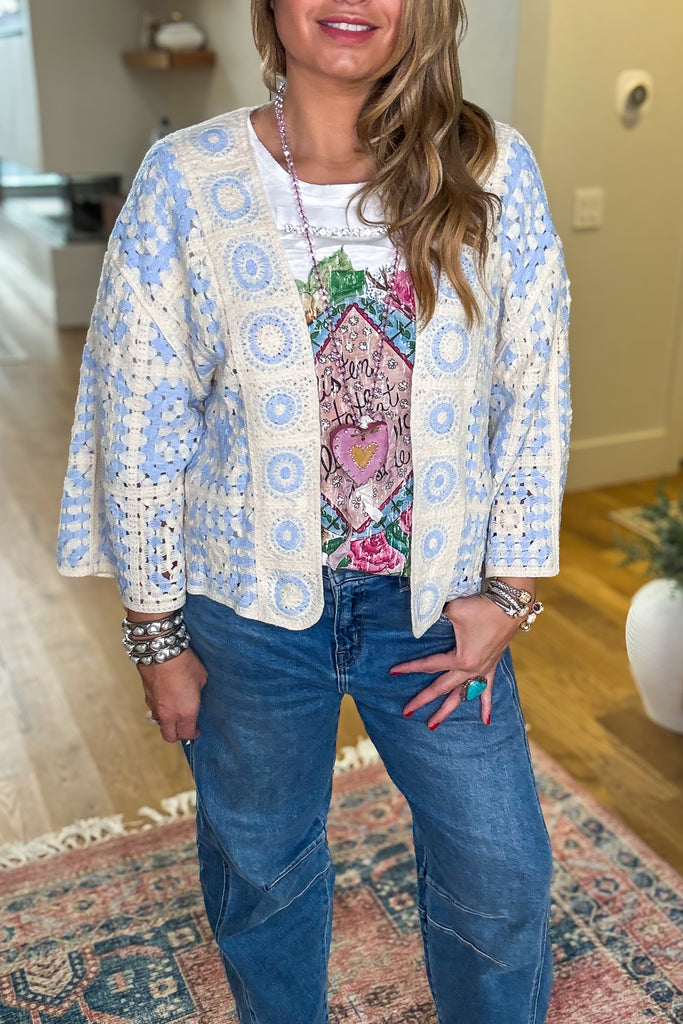Summer Drift Crochet Cardigan - Sky