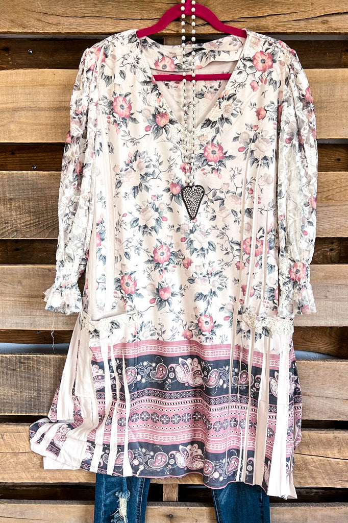 AHB EXCLUSIVE: Candle On The Water Suede Tunic - Beige/Floral - SALE