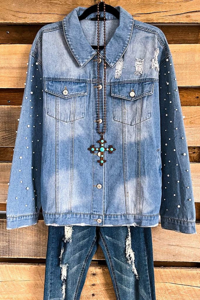 Denim & Pearls Jean Jacket - 100% COTTON - SALE