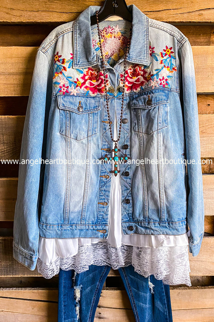 AHB EXCLUSIVE: Lead Me With Love Embroidered Jean Denim Jacket - Denim