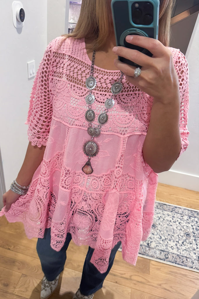 AHB EXCLUSIVE: Delightful Details Cotton Top - Pink - 100% COTTON