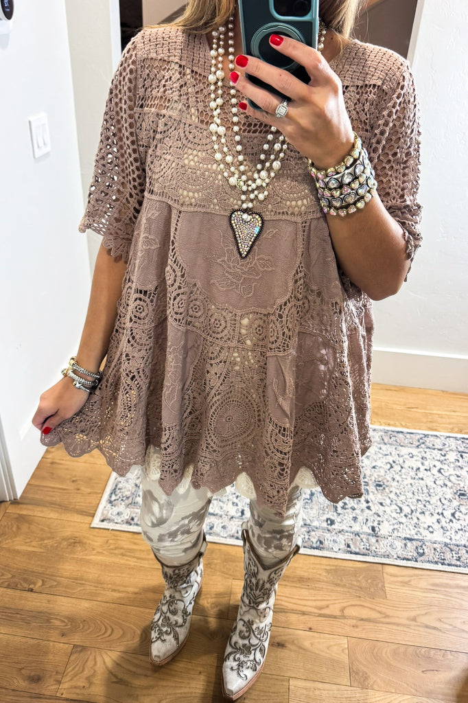AHB EXCLUSIVE: Delightful Details Top - Taupe - 100% COTTON