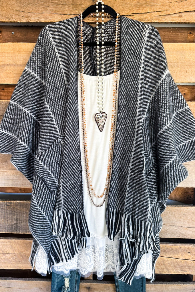 Ivory Lable Herringbone Ruana - Black