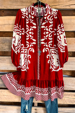 Jersey Girl 2 Piece Dress - Crimson (Scarf Tunic)