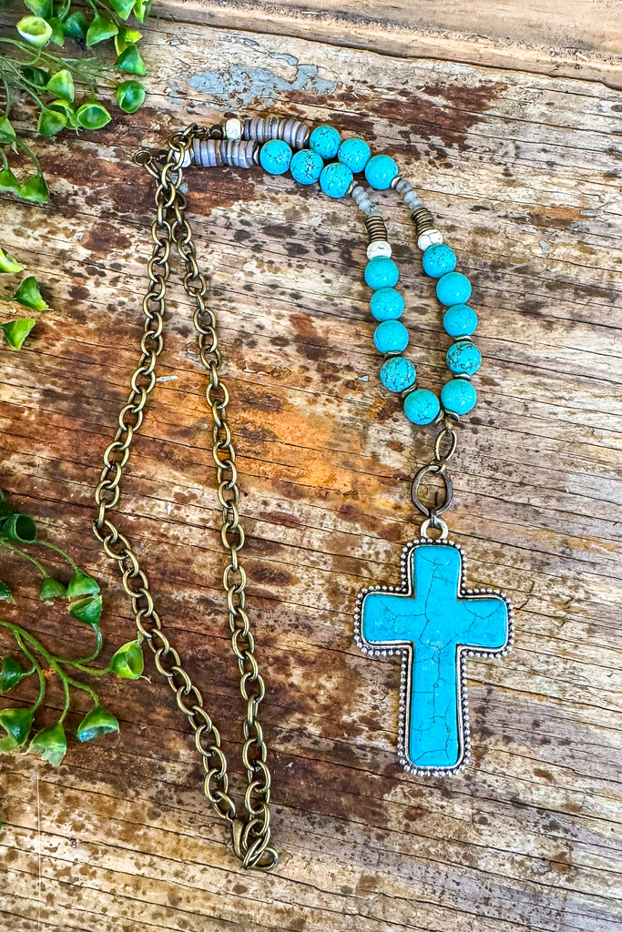 Bohemian Beaded Cross Chain Necklace - Turquoise