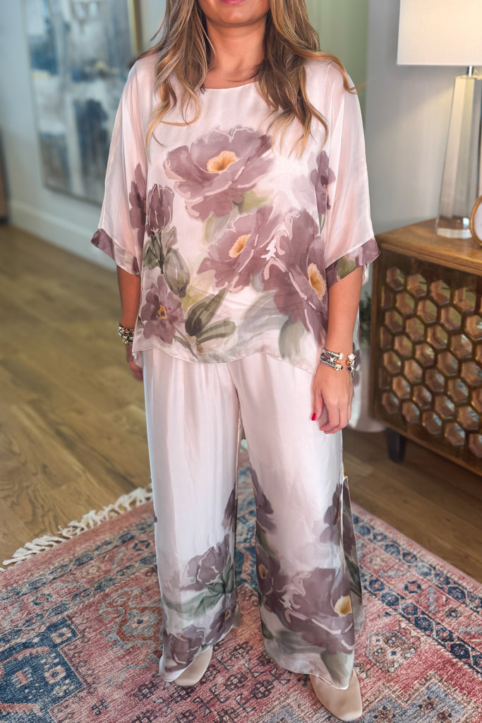 Dreamy, flowy palazzo pants made in Italy with a luxe silk blend that feels light and elegant on the body.