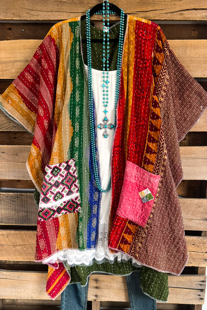 NATURAL FABRIC: Assorted Feelings Tie Front Kimono - Yellow Back 100% COTTON