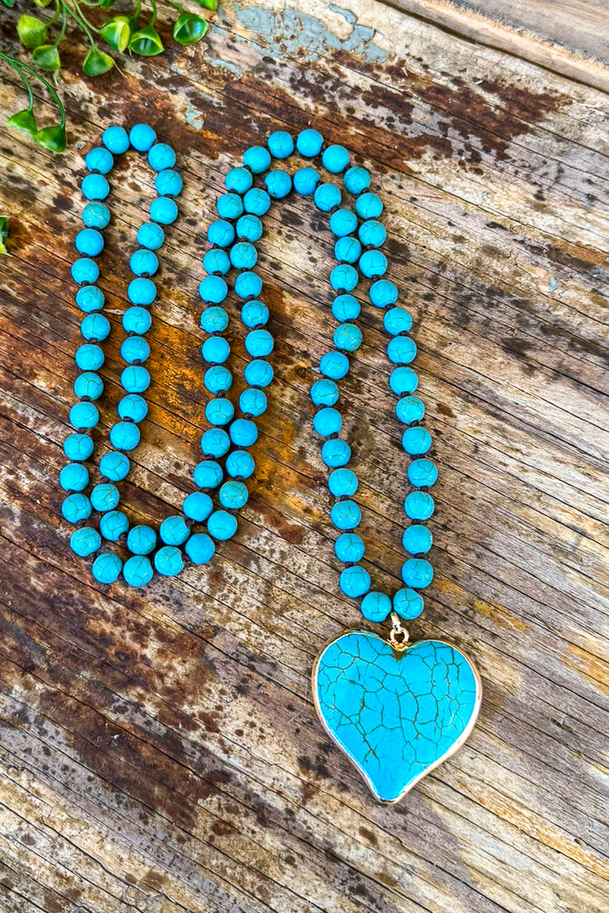 Turquoise Stone Heart Necklace - Turquoise