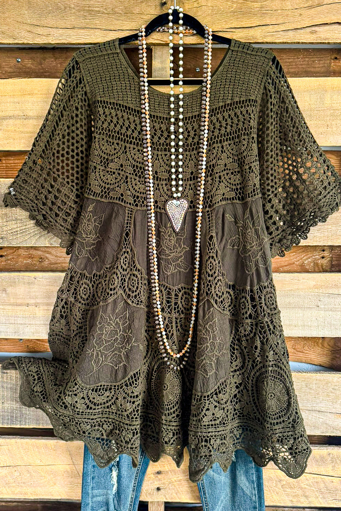 AHB EXCLUSIVE: Delightful Details Cotton Top - Olive - 100% COTTON